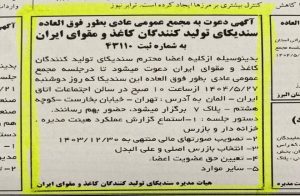 ” سندیکای کاغذ ومقوای ایران ”